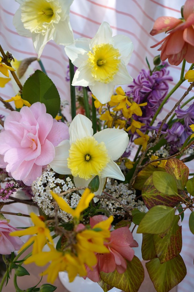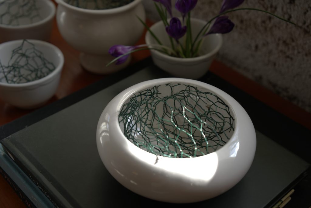 Chaque composition est imaginée et conçue pour ne plus utiliser de la mousse florale à base de microplastiques. À la place l’utilisation des techniques alternative comme le grillage, le kenzan (pique-fleurs) ou encore des contenants réutilisables sont privilégiés.