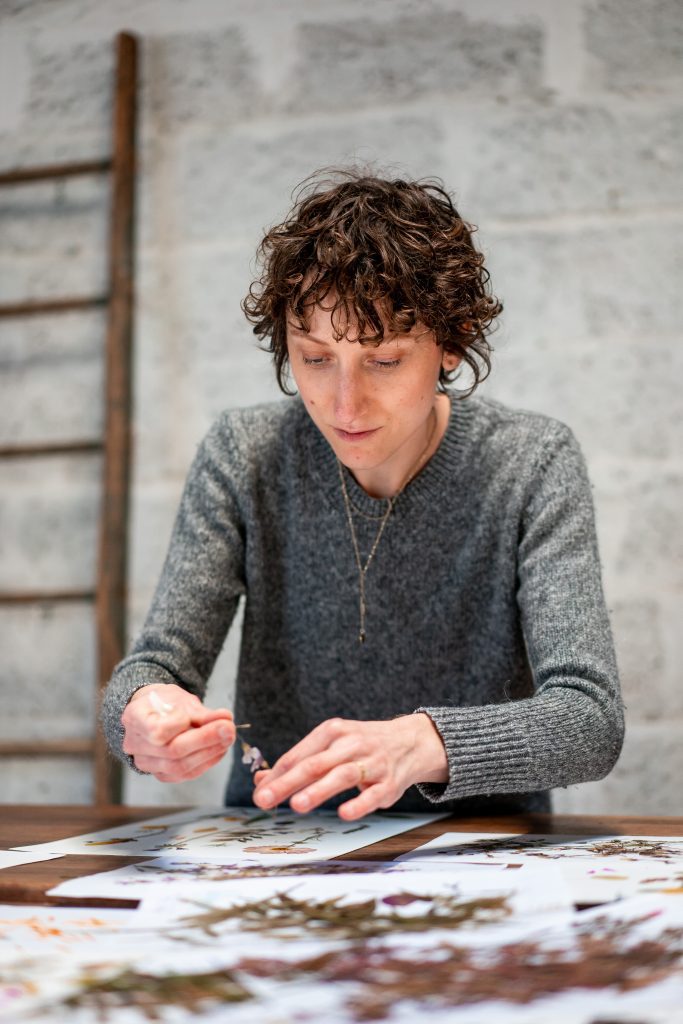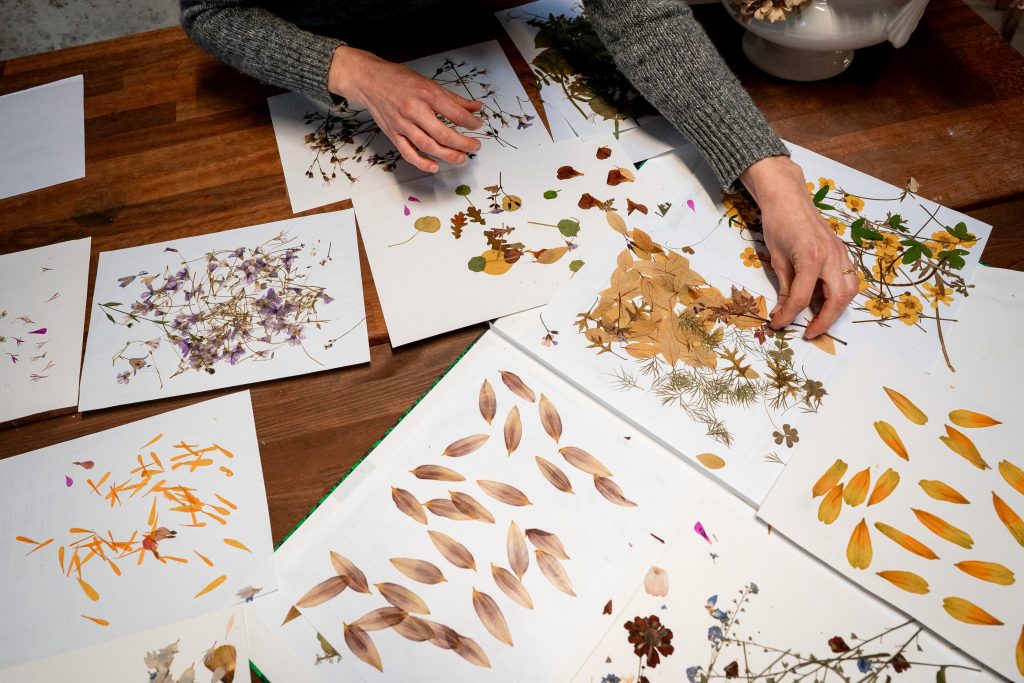 Les fleurs restantes après un événement sont soigneusement pressées pour créer des herbiers. Une façon poétique et durable de prolonger leur beauté.
